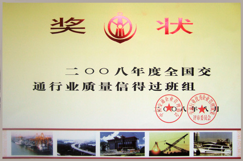 2008年度全國交通行業(yè)質(zhì)量信得過班組獎狀