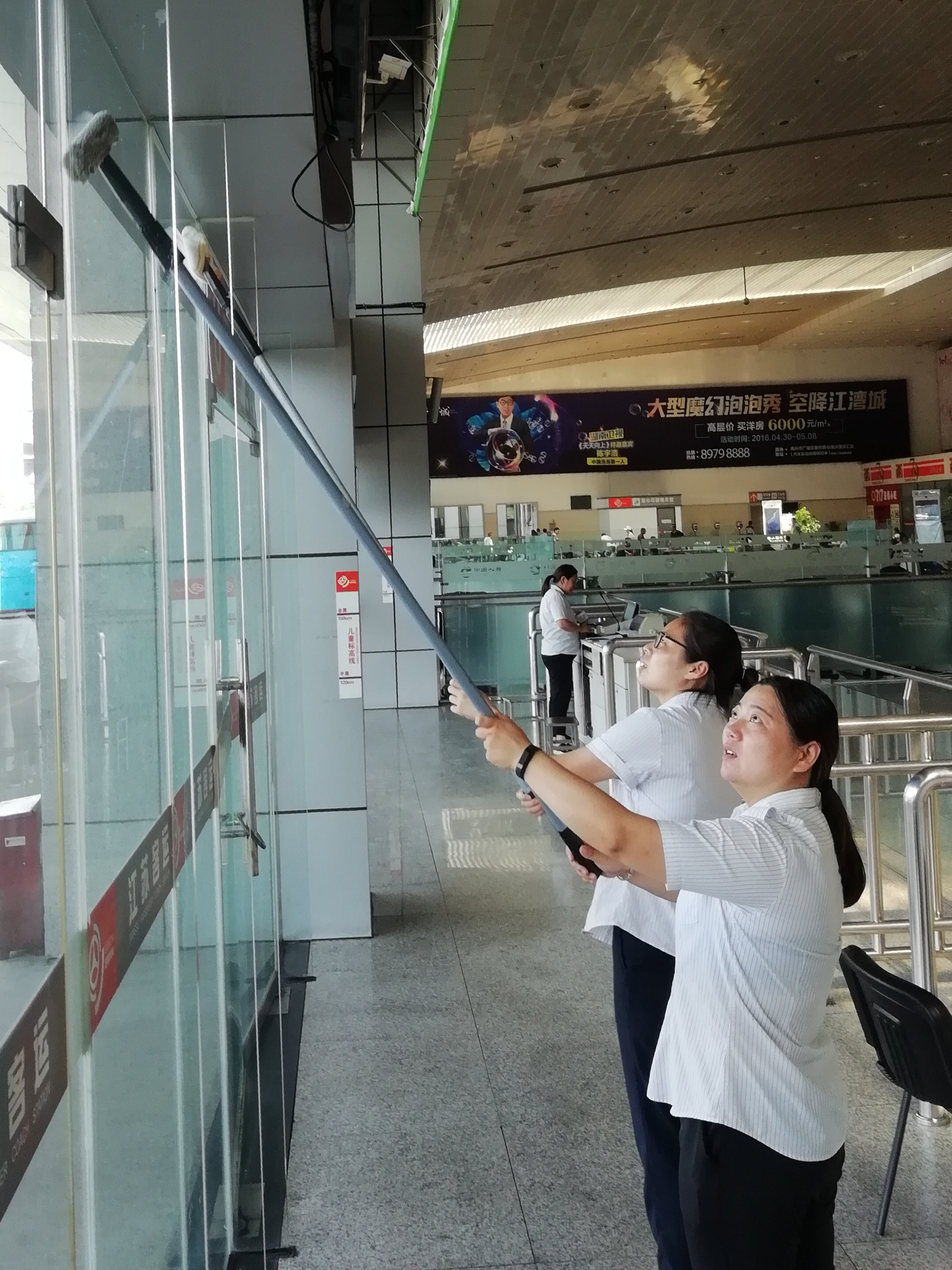 我市愛國衛(wèi)生委員會向全市發(fā)出創(chuàng)建衛(wèi)生城的號召,東站干群立即行動起來,成立以徐建波為組長的創(chuàng)建衛(wèi)生城領(lǐng)導(dǎo)小組,宣傳組、后勤組、督查組分工明確,專人負(fù)責(zé),對全站重點部位展開拉網(wǎng)式檢查,綠化、門窗、地面、燈光、水電、副業(yè)網(wǎng)店、宣傳氛圍等方面嚴(yán)格按照市愛國衛(wèi)生委員會文件要求逐一排查,整改到位。下客區(qū)、停車場、閘口地面年久失修,影響旅客和車輛出行,交投和集團(tuán)分管領(lǐng)導(dǎo)親臨一線,安排施工隊進(jìn)場作業(yè),加班加點,現(xiàn)在地面已經(jīng)面目一新。綠化帶苗木缺失,研究方案,已補(bǔ)苗改造到位,玻璃長廊鐵框銹跡斑斑,立即安排工人冒高溫到現(xiàn)場油漆作業(yè)奮戰(zhàn)兩天,現(xiàn)在已經(jīng)煥然一新。東站各部門、班組排了衛(wèi)生值班表,每天對照創(chuàng)建衛(wèi)生城的標(biāo)準(zhǔn),對工作場所包干區(qū)的衛(wèi)生進(jìn)行認(rèn)真打掃清理。