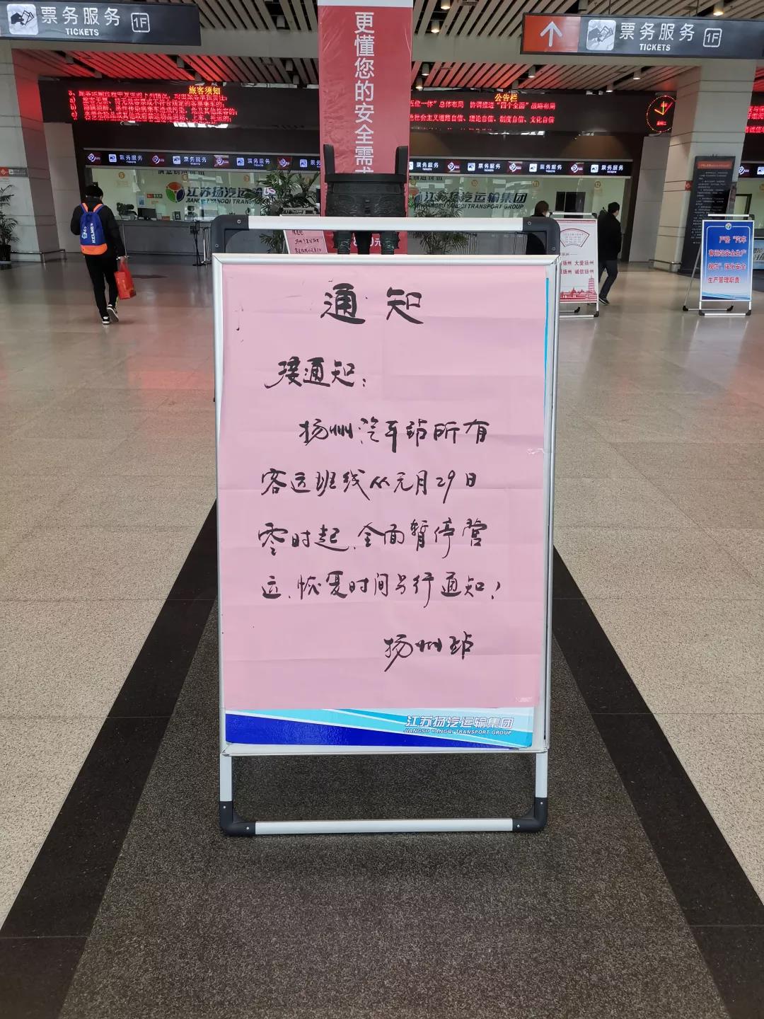為進一步配合我市做好新型冠狀病毒感染的肺炎疫情防控工作,遏制疫情通過交通渠道擴散傳播,揚汽集團根據揚州疫情防控工作需要,決定從2020年1月29日0時起,暫停揚州汽車站、揚州汽車東站及江都汽車客運站的運營,停發(fā)所有客車班線,暫停所有包車客運業(yè)務。