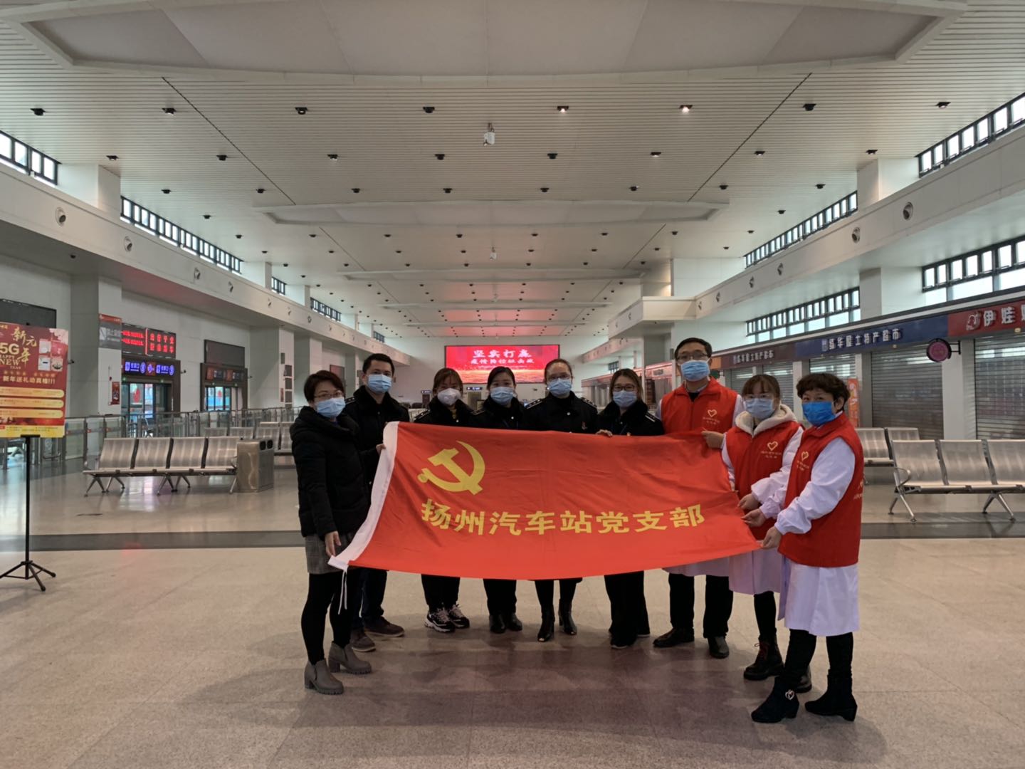 2月25日揚州站復工復產(chǎn)的第二天,揚州市中醫(yī)院抗“疫”小分隊為揚州汽車站里的旅客們和堅守在一線崗位的職工送來了抗疫藥品和義診服務。