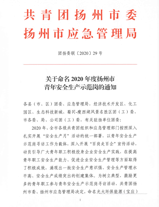 2020年,揚(yáng)汽集團(tuán)修理廠維護(hù)班切實(shí)落實(shí)“安全第一、服務(wù)第一、質(zhì)量第一”總目標(biāo),以突出的成績,被共青團(tuán)揚(yáng)州市委與揚(yáng)州市應(yīng)急管理局授予“揚(yáng)州市青年安全生產(chǎn)示范崗”稱號。
