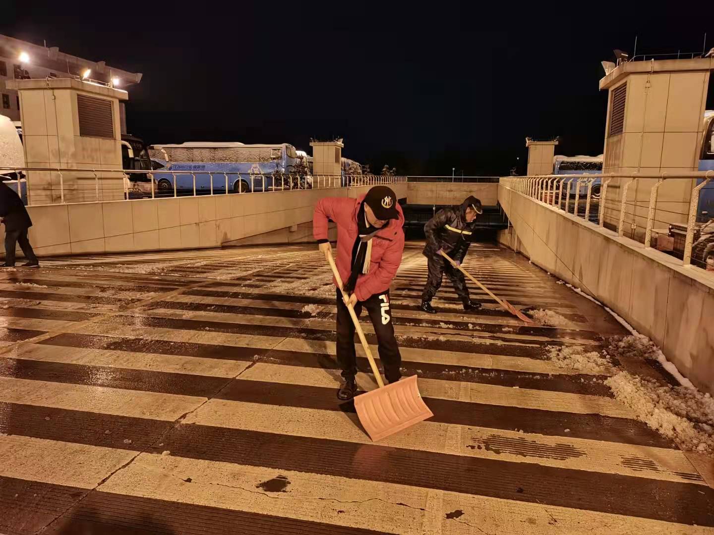 12月30日早上各黨支部積極響應(yīng)集團黨委號召,組織黨員干部、管理人員協(xié)助車站清理積雪,在站前廣場、發(fā)車平臺,進出站口等重點部位,大家拿著掃把、草墊、鐵鍬、雪鏟,充分發(fā)揮團隊協(xié)作精神,干勁十足,一派熱火朝天景象,為班線開通做好后勤保障。