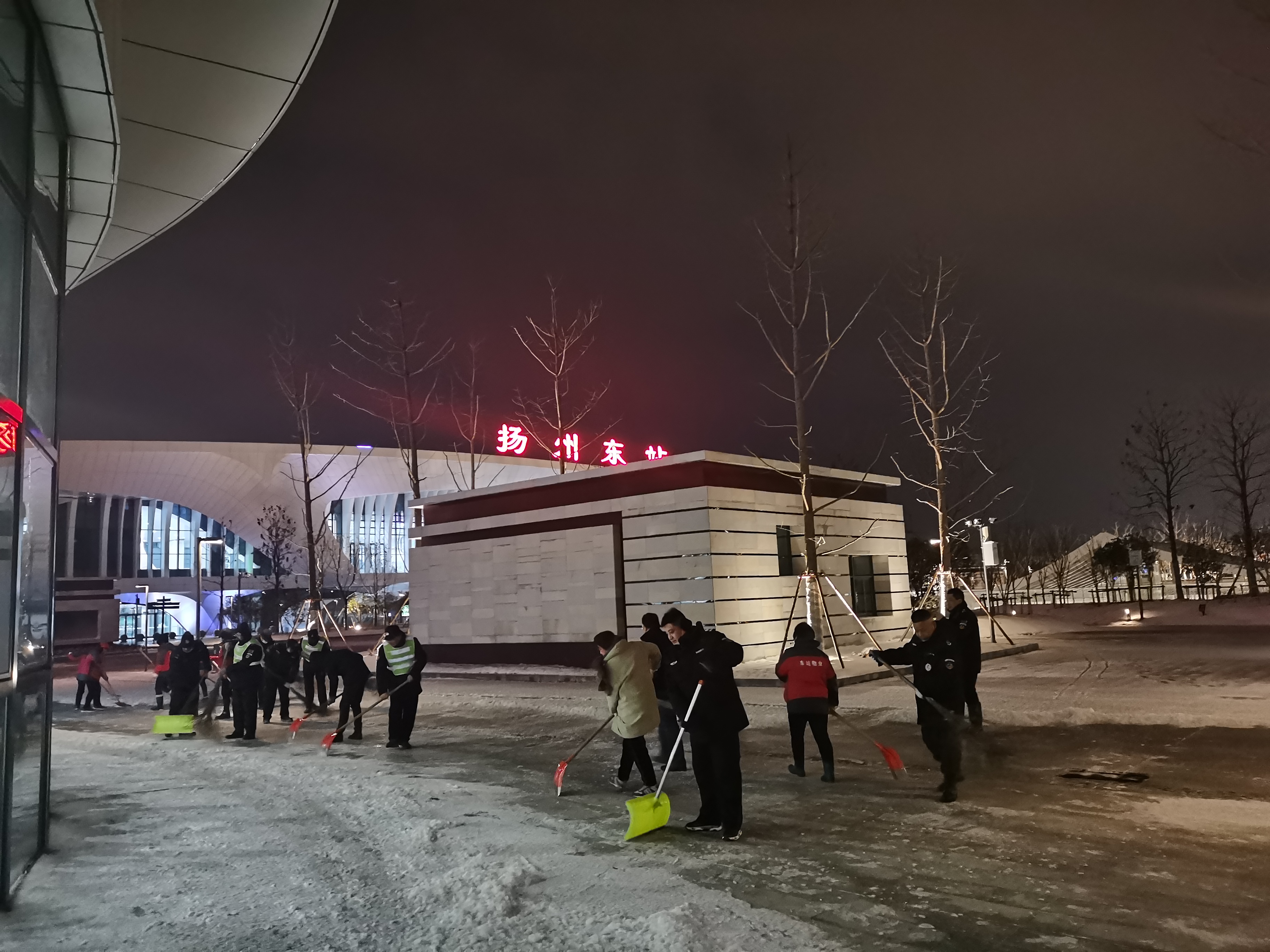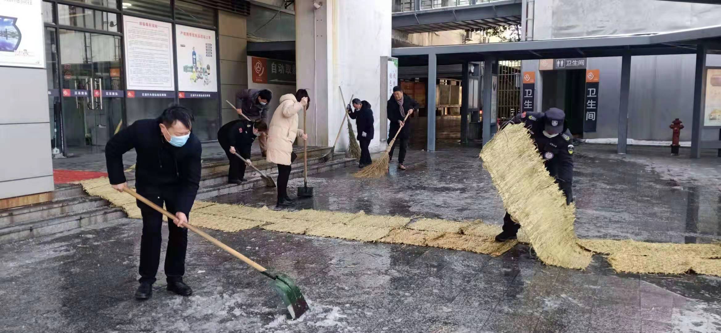 大雪過后,融雪除冰是旅客出行的保障,車站連夜安排職工、物業(yè)根據(jù)雪情實施作業(yè),確保道路通暢。