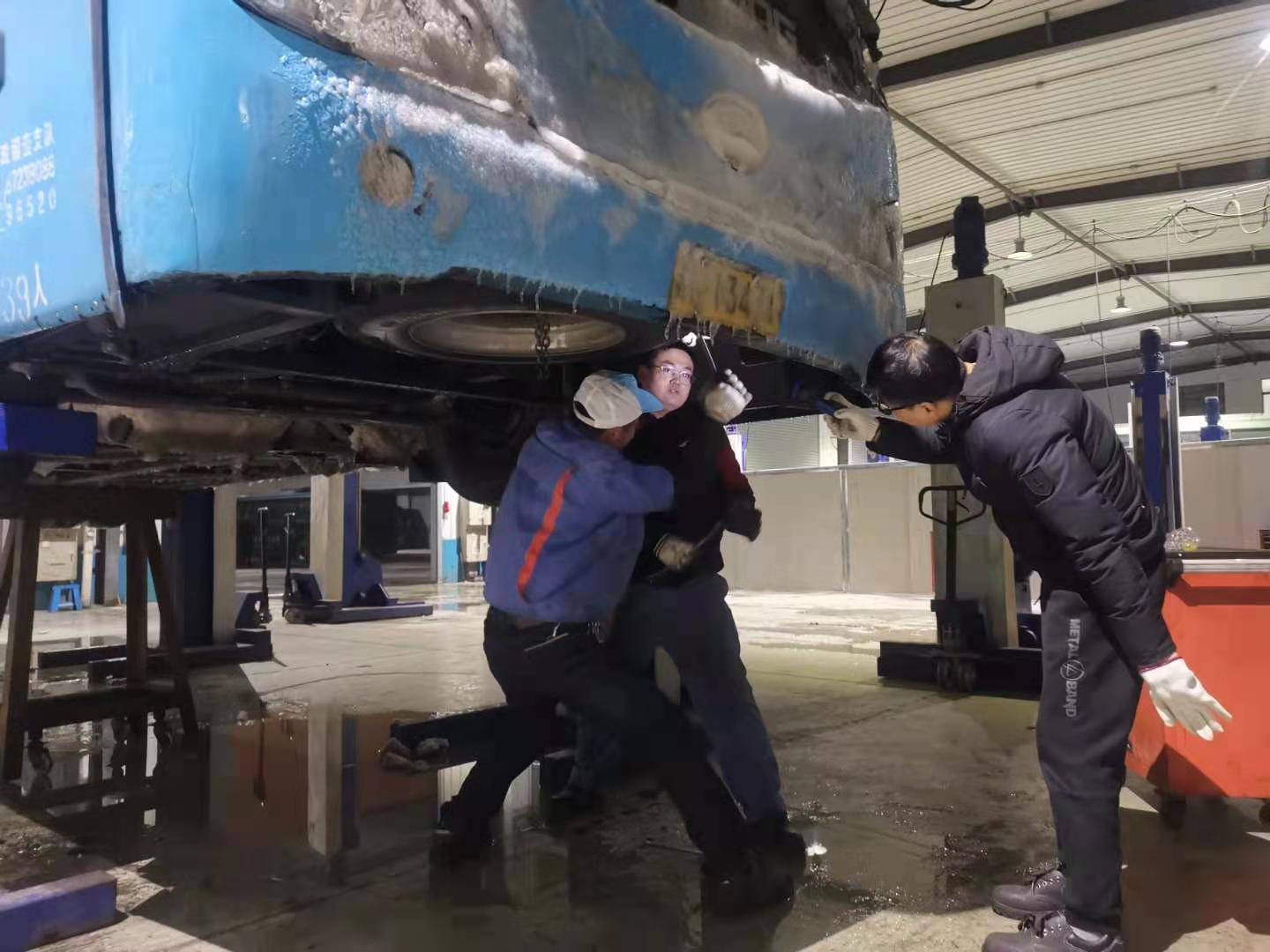 29日深夜修理廠對車輛進行搶修,揚汽出租的黨和職工清除場地冰凍積雪,及時消除安全隱患;在大家的努力下,教培中心科目二考場已無積雪積冰,車輛均已調(diào)試完好。