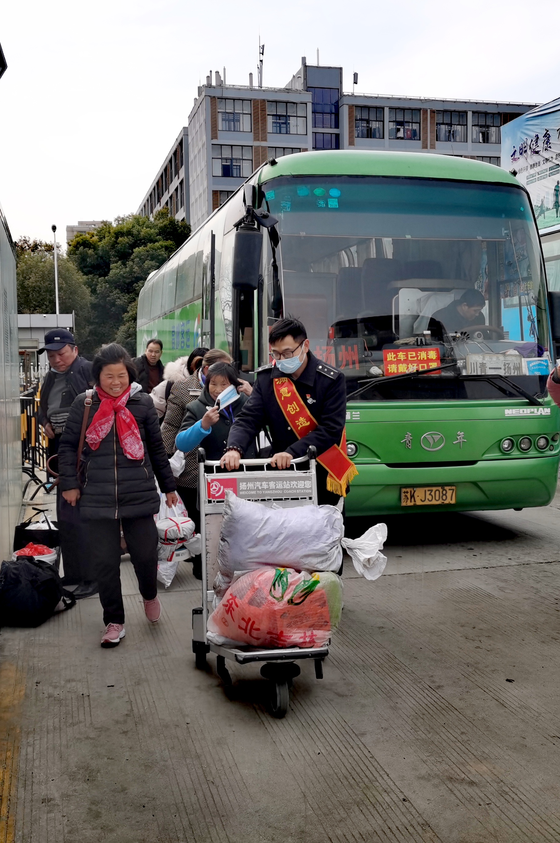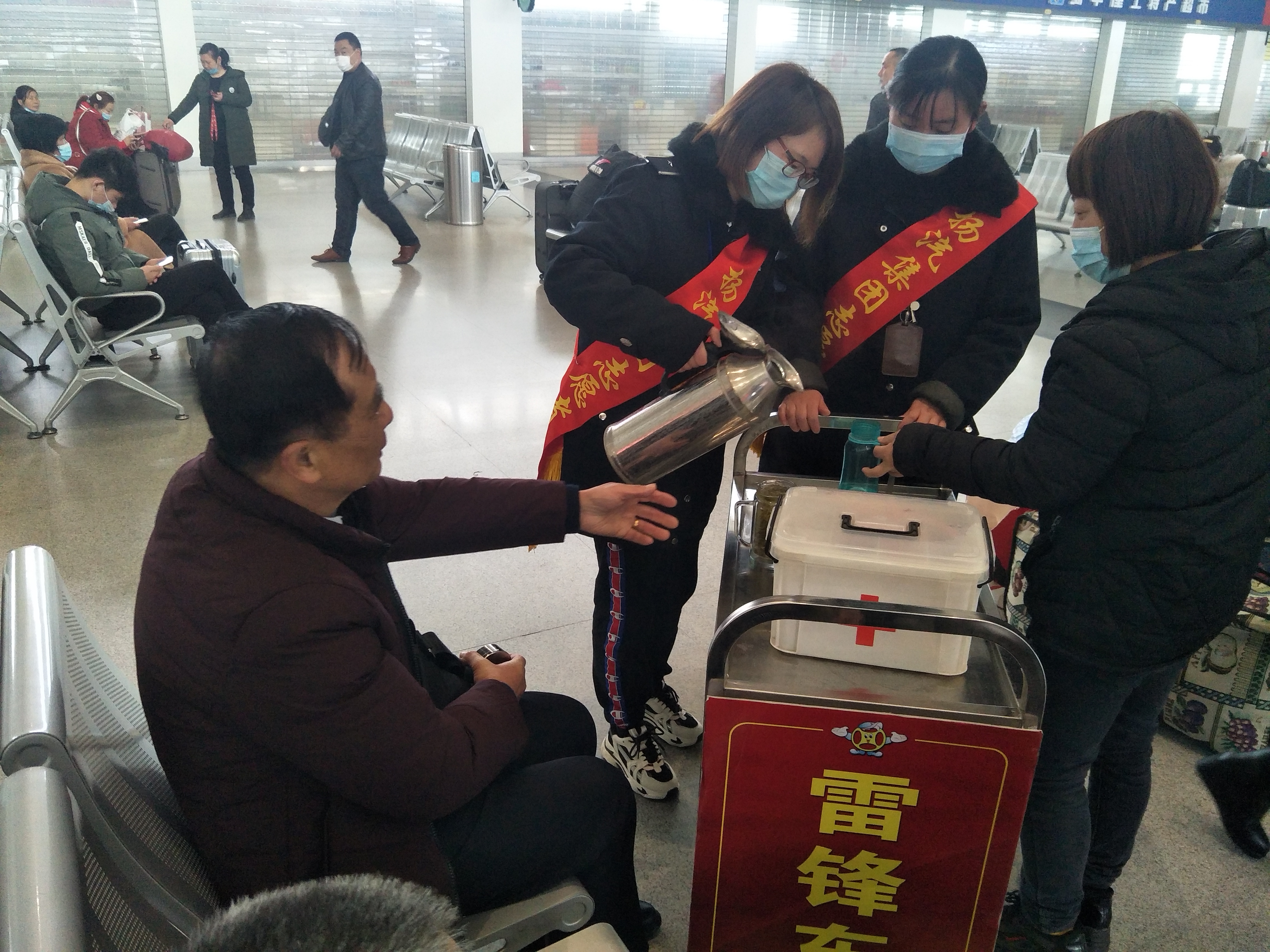 “大媽,您需要熱水嗎?”、“您好,需要我?guī)湍眯欣顔幔?rdquo;、“有什么需要我為您服務的嗎?”……志愿者們推著行李車,拿著熱水瓶,時刻關(guān)注著身邊的每一位旅客,在有需要幫助的時候,第一時間出現(xiàn)在旅客身邊,為旅客導乘、攙扶老弱病殘、幫旅客提拿沉重的行李、給需要飲水的旅客遞去熱水,他們用真誠的服務換來了旅客們一聲聲的感謝。
