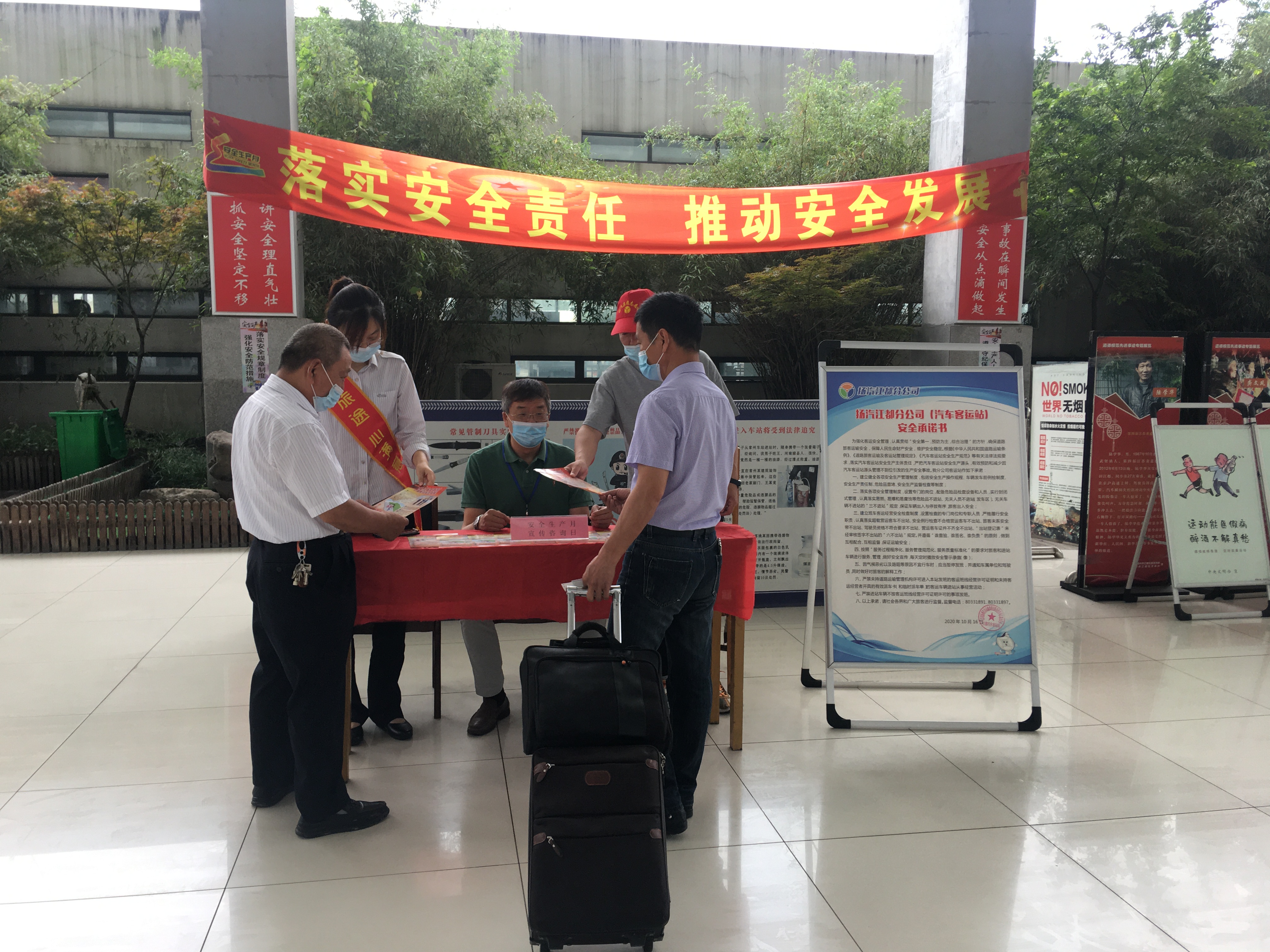 6月17日,集團(tuán)所屬汽車客運(yùn)站在確保疫情防控安全的前提下,在車站大廳內(nèi)設(shè)立了安全生產(chǎn)宣傳服務(wù)臺,各部門、各單位由分管安全領(lǐng)導(dǎo)帶隊,通過安全生產(chǎn)月咨詢?nèi)栈顒樱邢蛞痪職工、來往旅客們發(fā)放安全生產(chǎn)法律法規(guī)宣傳資料,宣傳黨和國家安全生產(chǎn)方針政策,傳遞安全理念,全力營造關(guān)注安全、關(guān)愛生命的濃厚氛圍。