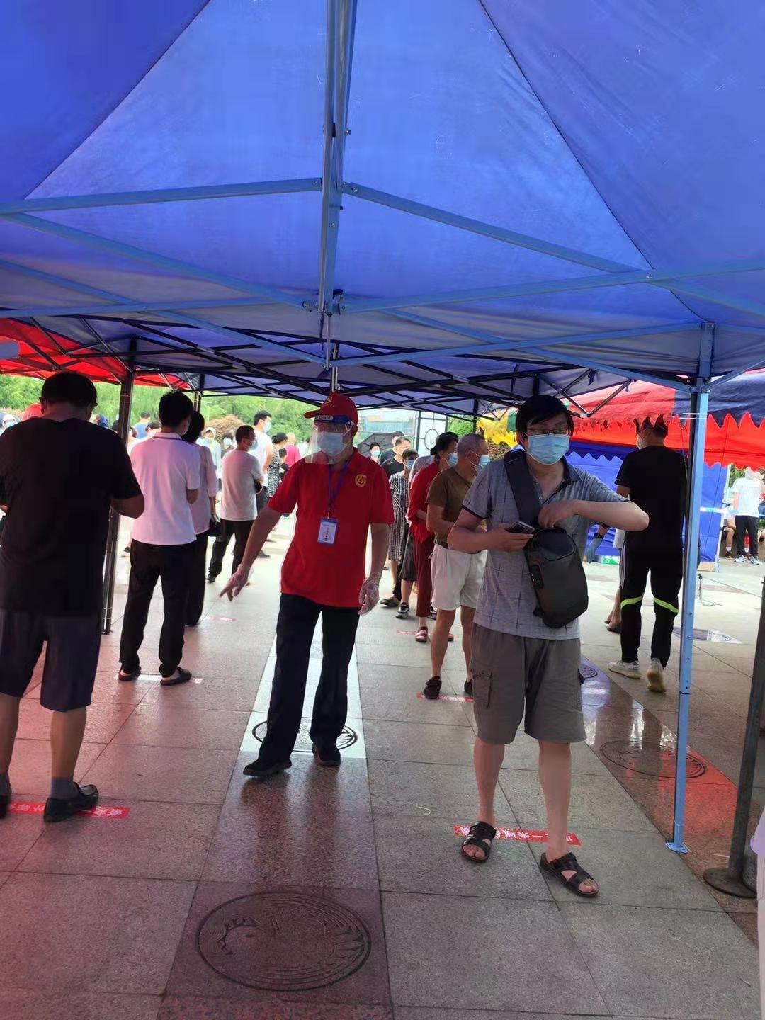 揚(yáng)州疫情爆發(fā),牽動(dòng)著每個(gè)人的心,黃建軍是揚(yáng)州站的值班站長(zhǎng),作為一名老黨員,主動(dòng)報(bào)名加入防疫阻擊戰(zhàn),于8月3日前往邗江區(qū)邗上街道進(jìn)行志愿服務(wù),深夜在臨時(shí)增加的來鶴臺(tái)廣場(chǎng)核酸檢測(cè)點(diǎn)貼地標(biāo),準(zhǔn)備各種用品,大、小垃圾桶等,協(xié)助社區(qū)做好準(zhǔn)備工作。第二天早上5點(diǎn),在五里社區(qū)來鶴臺(tái)廣場(chǎng)開展第三次核酸檢測(cè)志愿服務(wù)工作,負(fù)責(zé)4千多戶居民的秩序維護(hù)。8月7日,他又前往邗上街道蘭莊社區(qū)望月苑核酸檢測(cè)點(diǎn)參加志愿服務(wù),用平凡的堅(jiān)守,打造戰(zhàn)“疫”路上的最強(qiáng)盾牌。