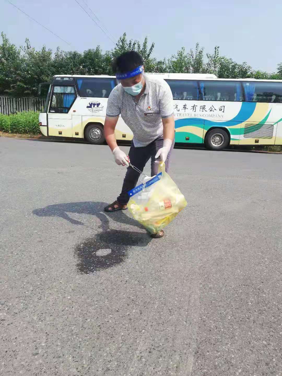 上午:奔赴垃圾集中投放現(xiàn)場,監(jiān)督處理未規(guī)范放置的防護服;清理車輛停放兩邊丟棄的口罩、手套等垃圾;