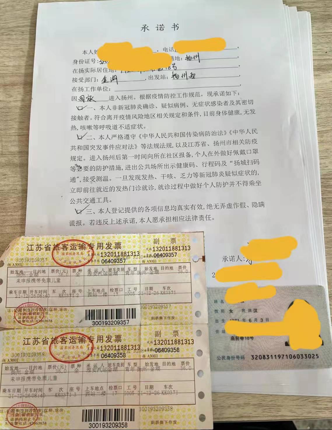 由于情況特殊,但也不能違反疫情防控要求。∵@可怎么辦呢?黃建軍從這名旅客提供的個人物件中,發(fā)現(xiàn)了幾張往返車票,通過車票拼湊出了她十四天內(nèi)的行程,僅往返于揚(yáng)州和金湖兩地,并未到過疫情重點(diǎn)區(qū)域。