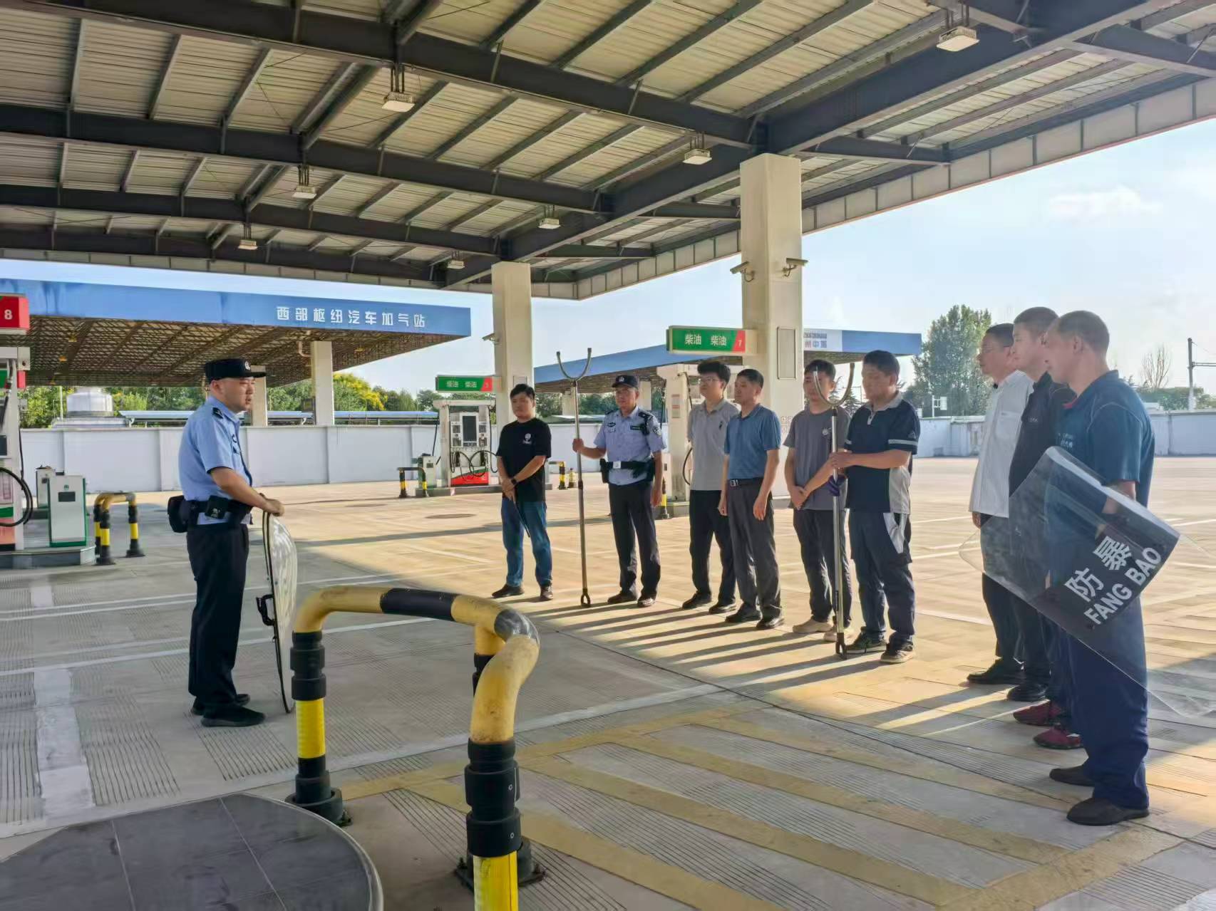 演練前期,雙方周密部署,制定了詳實(shí)的演練方案,明確了崗位職責(zé)與處置流程。車站派出所民警結(jié)合加油站實(shí)際,對(duì)參演人員開展了反恐知識(shí)及防護(hù)技能的系統(tǒng)培訓(xùn)。演練模擬“恐怖分子”強(qiáng)行闖入加油站的突發(fā)場(chǎng)景,F(xiàn)場(chǎng)配備盾牌、防刺背心等專業(yè)裝備,營(yíng)造出高度緊張的實(shí)戰(zhàn)氛圍,有效檢驗(yàn)了人員的應(yīng)急反應(yīng)與協(xié)同處置能力。