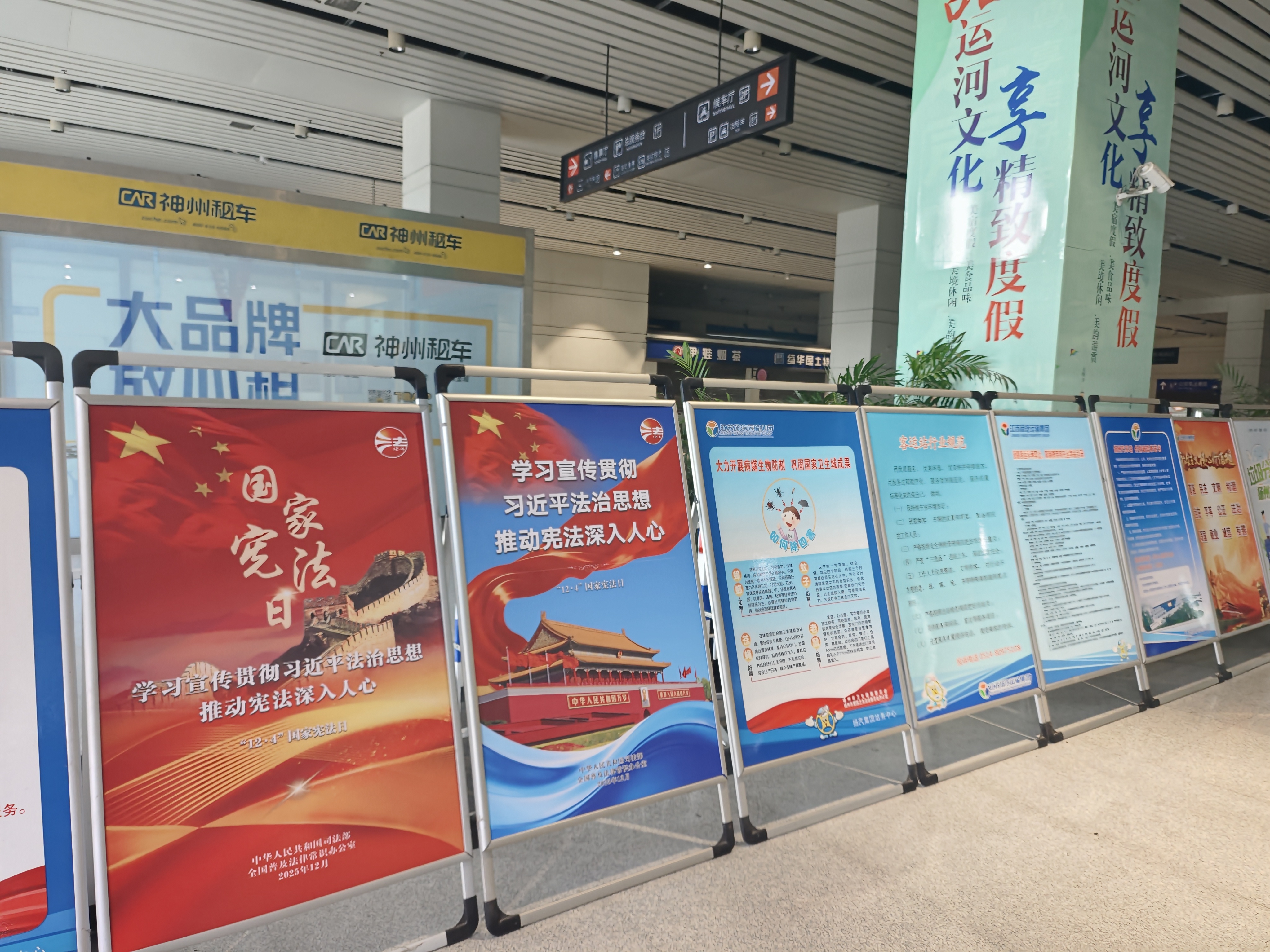 為營造濃厚宣傳氛圍,集團充分利用線上線下宣傳陣地。在線下,集團充分利用交通服務窗口優(yōu)勢,在東部樞紐、西部樞紐的候車區(qū),科目三考場候場區(qū)及集團辦公區(qū)等場所,不僅通過電子大屏滾動播放宣傳內容,還精心布置了系列主題戧牌,使憲法知識融入日常工作與服務場景。線上宣傳同步推進,通過發(fā)放學習資料,擴大了宣傳的覆蓋面和靈活性。